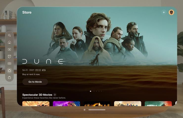 L’esperienza di intrattenimento più promettente di Vision Pro è la visione di video in 3d. Al momento del lancio del visore saranno disponibili per l’acquisto o il noleggio nell’Apple Store più di 150 film nel formato 3d. Questi saranno facilmente riconoscibili grazie all’etichetta ‘3D’ mostrata al fianco dei titoli riproducibili in tre dimensioni.
