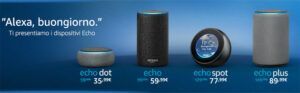 Amazon Alexa in Italia con Amazon Echo, Echo Plus, Echo Dot, Echo Spot e Eho Sub