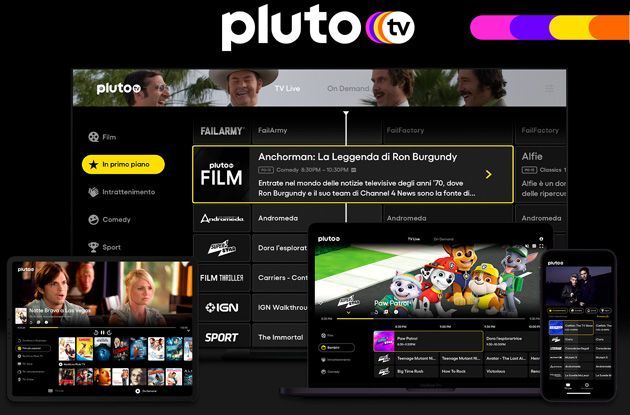 Pluto TV, anteprima dell’interfaccia utente su piu’ dispositivi