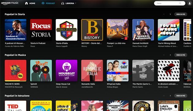 I podcast sono arrivati su Amazon Music in Italia, disponibili dal 14 aprile 2021 per tutti i clienti del servizio di streaming musicale di Amazon, senza costi aggiuntivi.