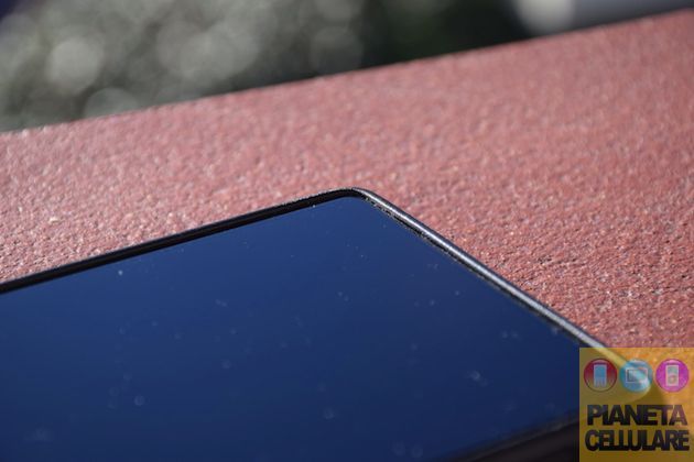 Nella parte anteriore troviamo un vetro leggermente curvo nei lati che abbraccia l’enorme display da 6,4 pollici LED IPS con risoluzione 2040 x 1080 pixel (362 ppi), sensore di prossimità posto al di sotto del display, sensore di luminosità, LED di notifica e fotocamera anteriore da 5 megapixel.