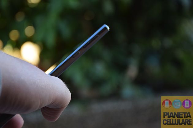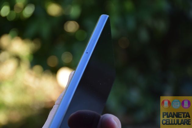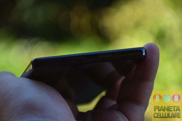 A sinistra lo slot per la doppia Sim Nano che non permette di espandere la memoria interna comunque già ottima dato che troviamo 128 GB (esiste la variante da 256 GB).