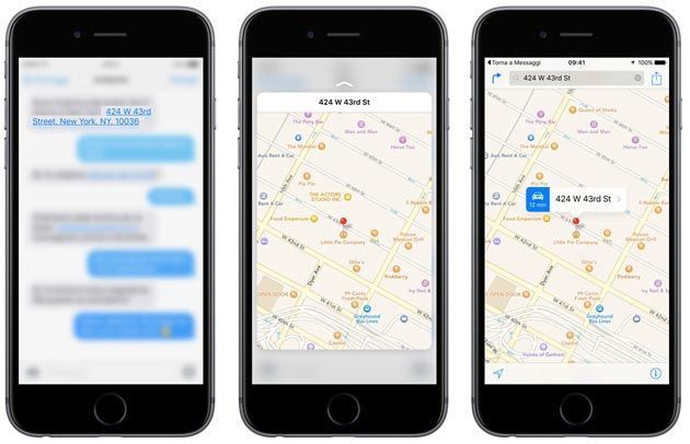 Anche per vedere un indirizzo sulla mappa basta un Peek. Se riceviamo un messaggio con un indirizzo, facendo un Peek è possibile vederlo su una mappa senza uscire dalla schermata in cui ci troviamo. E’ quindi possibile premere leggermente sull’indirizzo per aprire una finestra con la mappa. Sollevando il dito torniamo alla schermata originale. Per approfondire la mappa, è possibile premere un po’ più forte e fare Pop.