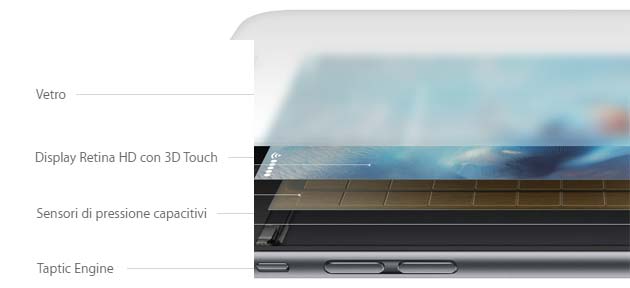 Apple ha ufficialmente presentato i nuovi iPhone 6s e iPhone 6s Plus, e tra le novità come previsto c’è la tecnologia Force Touch, ovvero la sensibilità del display alla pressione, che però Apple ha evoluto rispetto a quanto proposto dalla concorrenza e per questo ha rinominato la sua tecnologia 3D Touch. Inoltre, sono stati aggiunti nuovi controlli Multi-Touch, chiamati Peek e Pop, che funzionano con il 3D Touch.