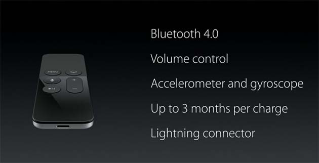 Il telecomando funziona tramite Bluetooth 4.0 e dispone di un accelerometro, un giroscopio, di tre mesi di durata della batteria con un uso normale, e la porta per connettore Lightning.