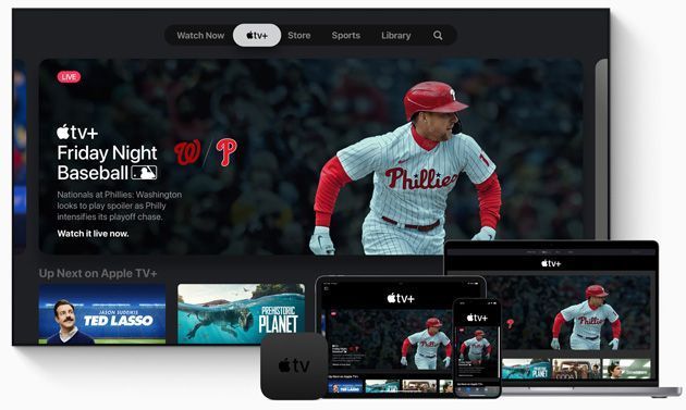 Gli appassionati della Major League Baseball (MLB) hanno la possibilità di guardare le partite disponibili in diretta oltre a contenuti aggiuntivi della programmazione "Friday Night Baseball", inclusi nuovi programmi esclusivi come "Countdown to First Pitch" per un’anteprima degli incontri della settimana e "MLB Daily Recap", solo nell’app Apple TV. In Apple News, è possibile seguire le proprie squadre preferite di MLB e guardare gli highlights personalizzati del campionato di MLB direttamente nell’app. Ogni venerdì, disponibili gli highlights con i momenti salienti e storie di tutto il campionato ed è possibile avere accesso diretto alla visione degli appuntamenti del "Friday Night Baseball" sull’app Apple TV. In Apple Music, si possono trovare playlist esclusive di brani dei battitori delle squadre presenti in "Friday Night Baseball" ogni settimana, oltre ad una raccolta di brani classici che celebrano il baseball.