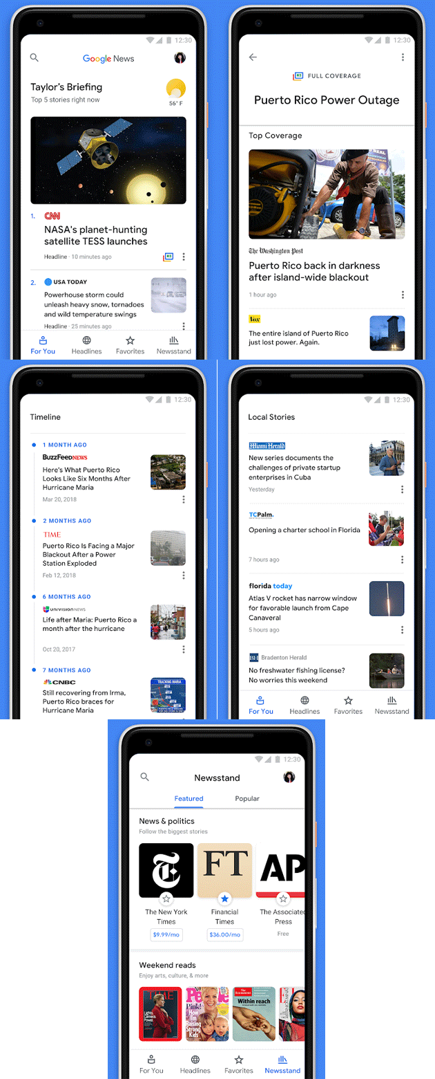 La nuova release di Google News unisce Google Play Edicola e Google Notizie e meteo in un’unica applicazione. Include i propri argomenti salvati e le riviste esistenti, nonchè gli abbonamenti e i ‘preferiti’. Non servirà quindi abbonarsi di nuovo a questi contenuti o contrassegnarli nuovamente come ‘da seguire’.
