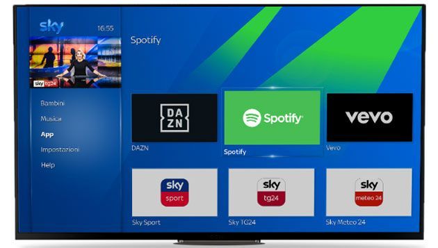 Importante notare che per poter utilizzare i servizi DAZN e Spotify sullo Sky Q è necessario che il decoder sia connesso ad internet.