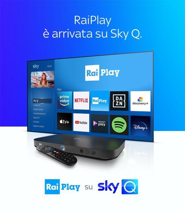 L’app RaiPlay va ad aggiungersi alle altre app dei partner Sky disponibili su Sky Q: Prime Video, Netflix, DAZN, Discovery+, Apple TV+, Youtube, Mediaset Play, Spotify e Disney+.
