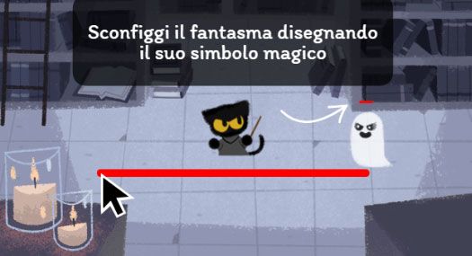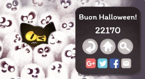 Questo browser game realizzato per Halloween è uno dei doodle piu’ divertenti che Google abbia mai proposto, in cui potreste finire per perdere anche parecchi minuti perchè piu’ si avanza di livello piu’ bisogna essere abili a disegnare velocemente i simboli per far scomparire i fantasmini.