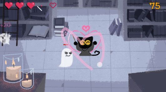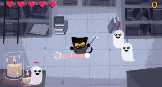 Quest’anno a noi utenti viene chiesto di afferrare una bacchetta e contribuire a respingere una catastrofe "spettrale". Google ci propone infatti un doodle che è un gioco interattivo, dove è possibile premere PLAY per iniziare a fare incantesimi, salvare (a)mici, e contribuire a ripristinare la pace al Magic Cat Academy dove è stato accidentalmente evocato uno spirito maligno che ha rubato libro degli incantesimi della scuola.