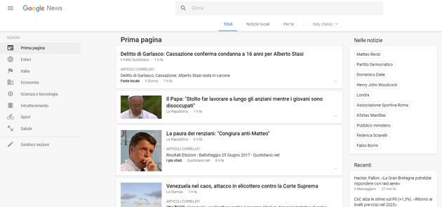 Il nuovo Google News è attivo in Italia dal 28 giugno 2017 all’indirizzo https://news.google.com/.
