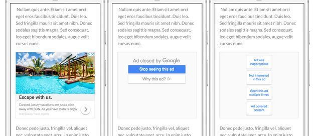 La seconda novità riguarda lo strumento chiamato "Disattiva questo annuncio" che Google ha introdotto nel 2012, per consentire agli utenti di bloccare un annuncio che non vogliono vedere. E’ stato un successo, ha detto Google, in quanto milioni di persone usano questa funzione ogni giorno e nel 2017 la società ha ricevuto più di 5 miliardi di feedback secondo cui l’opzione è utile per non vedere piu’ annunci che non sono pertinenti. Google in risposta a questi feedback ha rimosso 1 milione di annunci dalla sua rete pubblicitaria. Oggi "Disattiva questo annuncio" viene migliorato in due modi importanti.