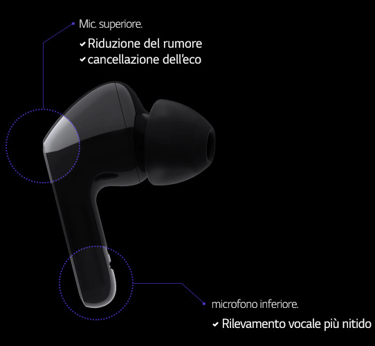 I microfoni integrati nelle cuffie LG TONE Free True Wireless