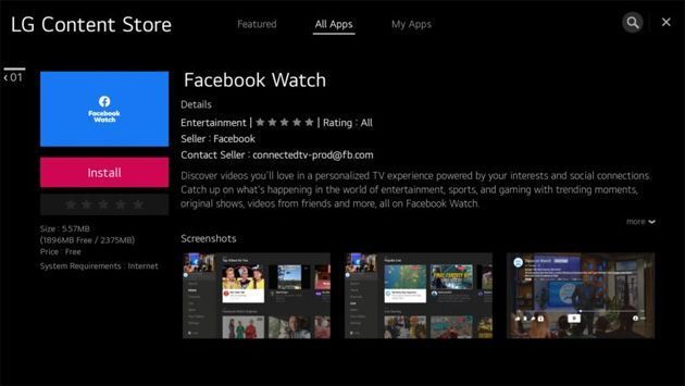 L’app TV Facebook Watch per TV Lg è disponibile per il download nell’LG Content Store.