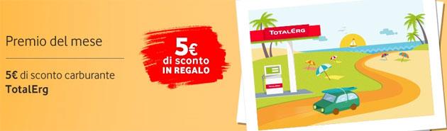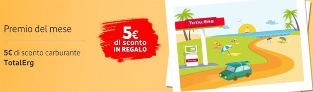 I clienti Vodafone che ricaricano almeno 10 euro entro il 14 luglio su vodafone.it e da App My Vodafone ricevono in regalo un buono sconto carburante di 5 euro nelle stazioni TotalErg aderenti. Valido per tutti i rifornimenti, senza vincolo di spesa minima, in modalità Servito e Self Service con pagamento al gestore.