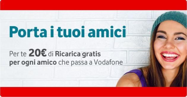 Con la promozione Porta i Tuoi Amici, ci sono infatti in palio 20 euro di ricarica per ogni amico presentato che passi a Vodafone. Oppure se si ha un piano in abbonamento della famiglia Relax, è previsto uno sconto progressivo sulla tassa di concessione governativa.