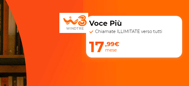 L’abbonamento WindTre Voce Piu’ costa 17,99 euro al mese con prezzo bloccato, non ci sono promozioni che scadono dopo alcuni mesi al termine dei quali il prezzo si alzerà.