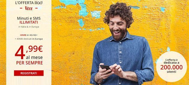 L’operatore Iliad che ha debuttato nel mercato italiano della telefonia con una offerta ‘tutto incluso’ da 5,99 euro resa disponibile per 1,2 milioni di clienti ha ora lanciato la sua prima offerta solo con minuti e SMS illimitati, senza giga, rivolta quindi alle persone a cui internet non interessa sullo smartphone ma che desiderano avere un’offerta solo per chiamare, ed eventualmente messaggiare via SMS, senza limiti. Questa offerta è chiamata ‘Voce’ e costa 4,99 euro al mese.