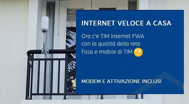 TIM FWA è la linea di offerte di TIM per la navigazione ultrabroadband da casa con una connessione veloce, pensata per chi abita in quelle zone non coperte o con problemi di connettività Fibra/XDSL. E’ disponibile in due versioni: TIM INTERNET FWA che è ‘solo dati’ nel senso che l’offerta è di solo accesso ad Internet con Ultra broadband; TIM SUPER FWA è ‘voce e dati’ fornendo il servizio voce attraverso internet.