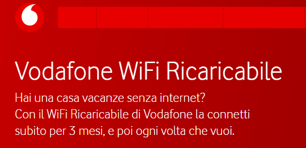 Vodafone ha lanciato la sua nuova offerta di internet mobile ricaricabile chiamata "Vodafone WiFi Ricaricabile", pensata per l’utilizzo in vacanza o per lavorare da remoto questa estate: si attiva su una SIM che può essere utilizzata su qualsiasi dispositivo che supporta una connessione internet (chiavetta mobile, smartphone, tablet, ecc) e consente di avere 3 mesi di internet con 300 Giga al mese in 4G fino a 1gbps/s al prezzo di 49,99 euro. Il costo di attivazione dell’offerta è gratuito, la SIM arriva a casa senza costi di spedizione e la disattivazione al termine dei 3 mesi inclusi sarà automatica.