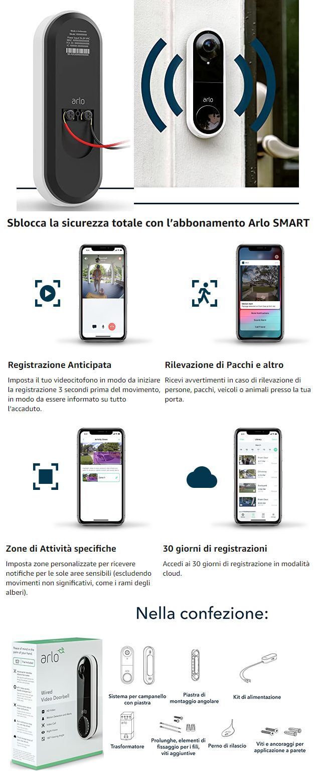 [Aggiornamento 05.01.2021] Da inizio 2021 disponibile il modello senza fili, Arlo Essential Video Doorbell Wire-Free.