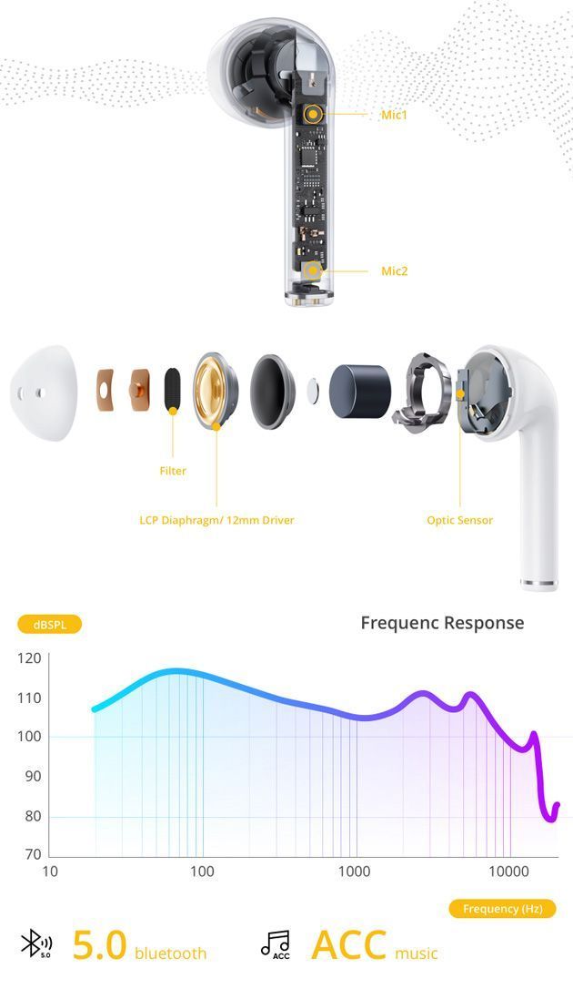 Gli auricolari presentano una soluzione DBB (Dynamic Bass Boost) personalizzata, ottimizzata dal team di acustica di Reamle dopo più di migliaia di cicli di test per aggiungere ai bassi ulteriore dinamismo e dimensione e rendere l’ascolto di musica e la visione di film un’esperienza più coinvolgente. Per l’ascolto di musica, gli auricolari supportano il codec audio AAC.