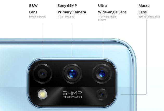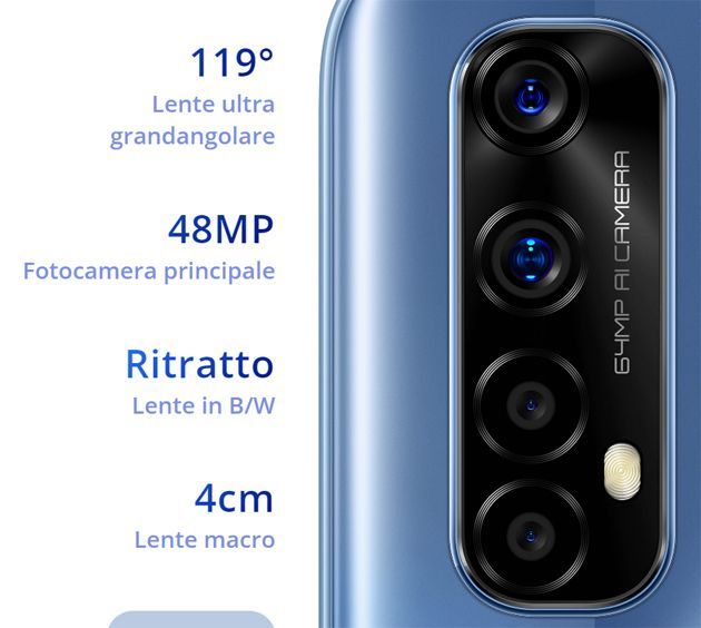 Nota: in India, Realme 7 e Realme 7 Pro hanno lo stesso comparto fotografico posteriore, entrambi i modello con obiettivo principale Sony IMX682 da 64MP.