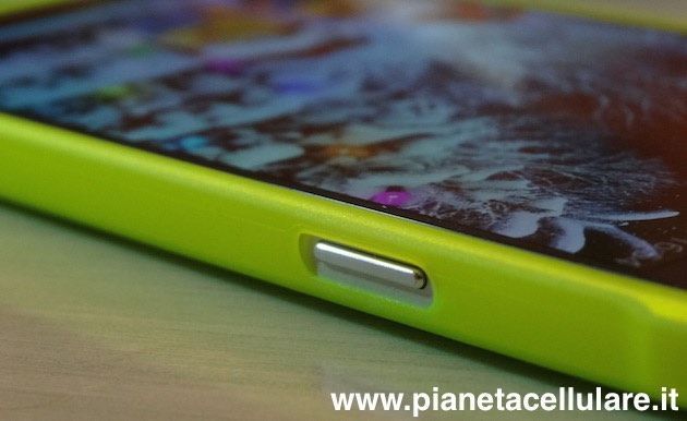 A destra il tasto di accensione e spegnimento.