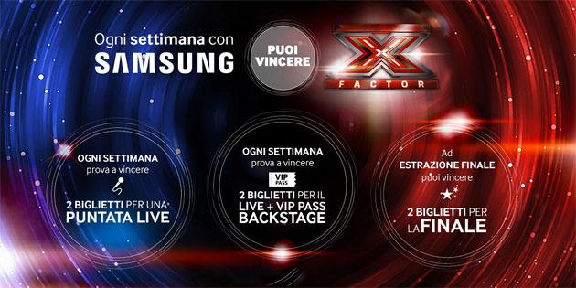 Samsung ha lanciato il nuovo concorso a premi denominato "Registra i tuoi prodotti a Samsung People e puoi vincere i biglietti per i live di X Factor" grazie al quale è possibile vincere ogni settimana due biglietti per assistere come pubblico alla puntata serale di X Factor o 2 biglietti per il assistere come pubblico alla puntata serale di X Factor più i VIP Pass per accedere a backwww. Inoltre, l’estrazione finale mette in palio 2 biglietti per assistere come pubblico alla finale di X Factor.