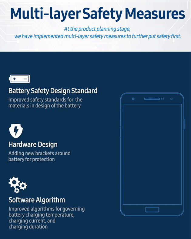 In seguito agli incidenti legati al Galaxy Note7, Samsung si è impegnata ad attuare nuove e migliorate misure di sicurezza, a partire da nuovi test per il controllo dello stato delle batterie.