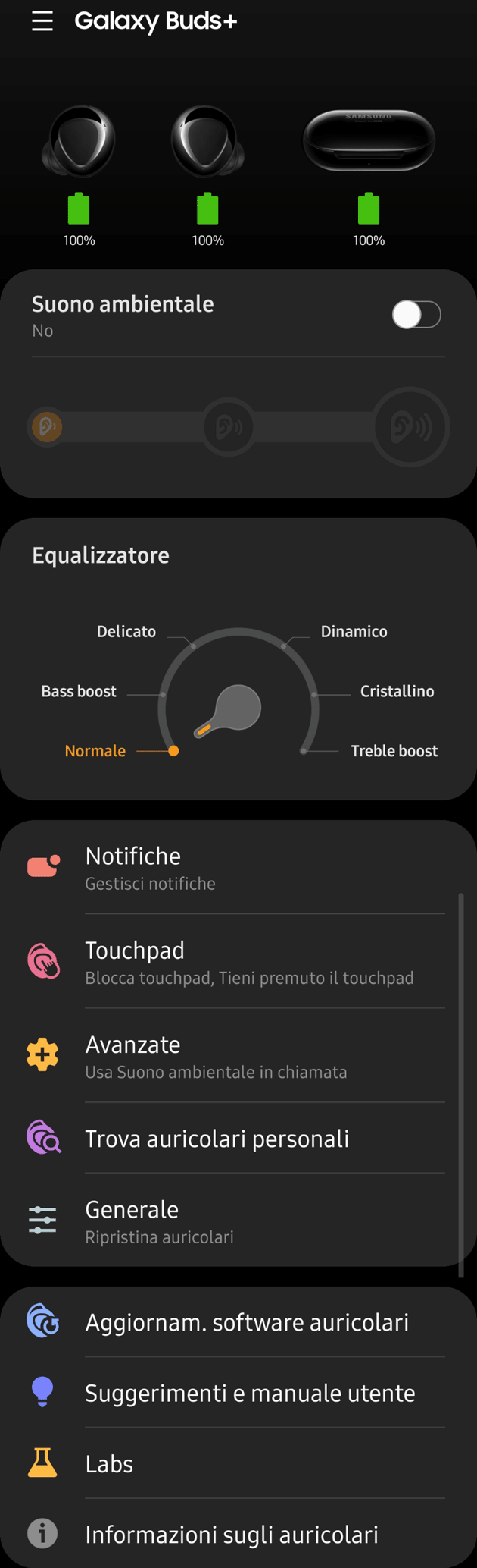 gestione dei Samsung Galaxy Buds Plus nell’app Samsung Wearable