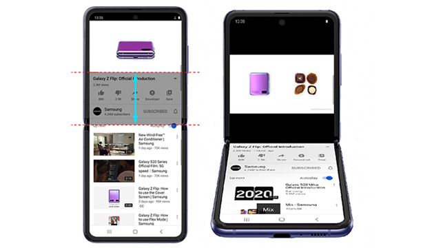 YouTube ha aggiornato la sua applicazione mobile per meglio adattarsi alla modalità "Flex Mode" dello smartphone Galaxy Z Flip, che consente all’app di dividere lo schermo in due. Samsung e Google hanno collaborato per portare un nuovo tipo di esperienza utente che si adatta al fattore di forma ‘pieghevole’ del Galaxy Z Flip. È l’ultimo sviluppo nato da una relazione lunga e fruttuosa tra le due società.