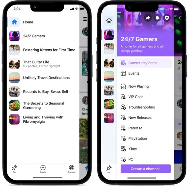 Facebook sta testando nella sua app mobile una nuova barra laterale di menu per consentire di accedere più facilmente ai gruppi preferiti, e sta introducendo i 'canali' nei gruppi per facilitare la connessione tra i membri su argomenti di interesse comune.