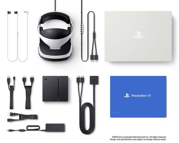 Pack da 399 euro comprende: 1xVisore VR, 1xUnità processore, 1x Cavo di collegamento visore VR, 1x Cavo HDMI, 1x Cavo USB, 1x Auricolari stereo (con un set completo di auricolari), 1x cavo di alimentazione AC, 1x adattatore AC.