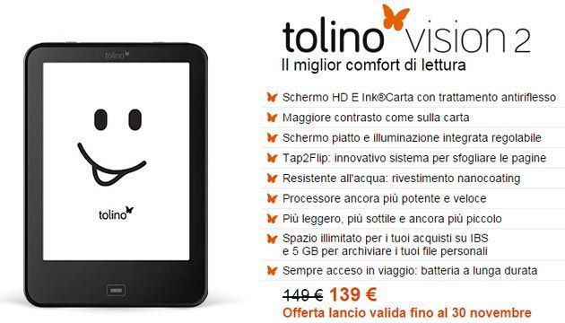 Gli eReader Tolino shine e Tolino Vision2 sono ora in vendita sul sito web e nelle librerie della catena Ibs: Tolino shine si trova al prezzo di 99 euro, mentre Tolino Vision2 costa 149 euro.