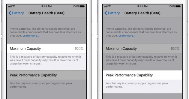 Su iPhone 6, iPhone 6 Plus, iPhone SE, iPhone 6s, iPhone 6s Plus, iPhone 7 e iPhone 7 Plus Apple ha introdotto per la prima volta in iOS 10.2.1 la "funzione di gestione energetica" che calibra dinamicamente le prestazioni di alcuni componenti del sistema limitando le prestazioni del dispositivo in modo da evitare spegnimenti improvvisi. In iOS 11.3, gli utenti possono scegliere di disattivarla a propria discrezione. Questa funzione si puo’ trovare in Impostazioni-> Batteria-> Stato Batteria (Beta).