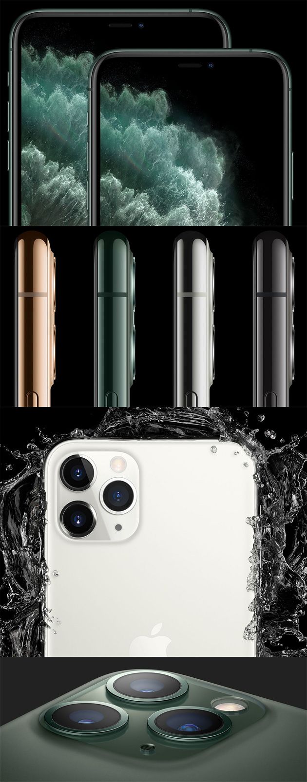 iPhone 11 Pro e iPhone 11 Pro Max sono certificati IP68 per resistere all’acqua ad una profondità massima di 4 metri fino a 30 minuti, secondo lo standard IEC 60529. E sono alimentati dal chipset Apple A13 Bionic con Neural Engine di terza generazione.