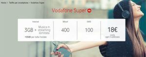 Vodafone Super: 3GB, 400 minuti, 100 SMS e streaming musica incluso a 18 euro per rinnovo