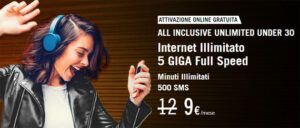 Wind All Inclusive Unlimited Under 30: 5GB, 500 SMS e minuti illimitati a 9 euro fino al 22 luglio