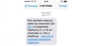 A mezzo SMS, Tre informa i propri clienti Business che a partire dal 22 Marzo, la segreteria telefonica sarà tariffata ...