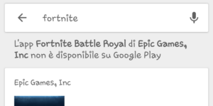 Fortnite su Google Play, la ricerca informa che il gioco non e’ disponibile per prevenire download di versioni false