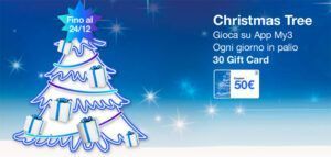 3 con Christmas Tree regala Gift Card di 50 euro per Natale (oggi ultimo giorno per giocare)