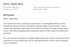 Apple ha pubblicato un annuncio di lavoro dedicato ai giornalisti per costituire la prima redazione che avrà il compito di ...