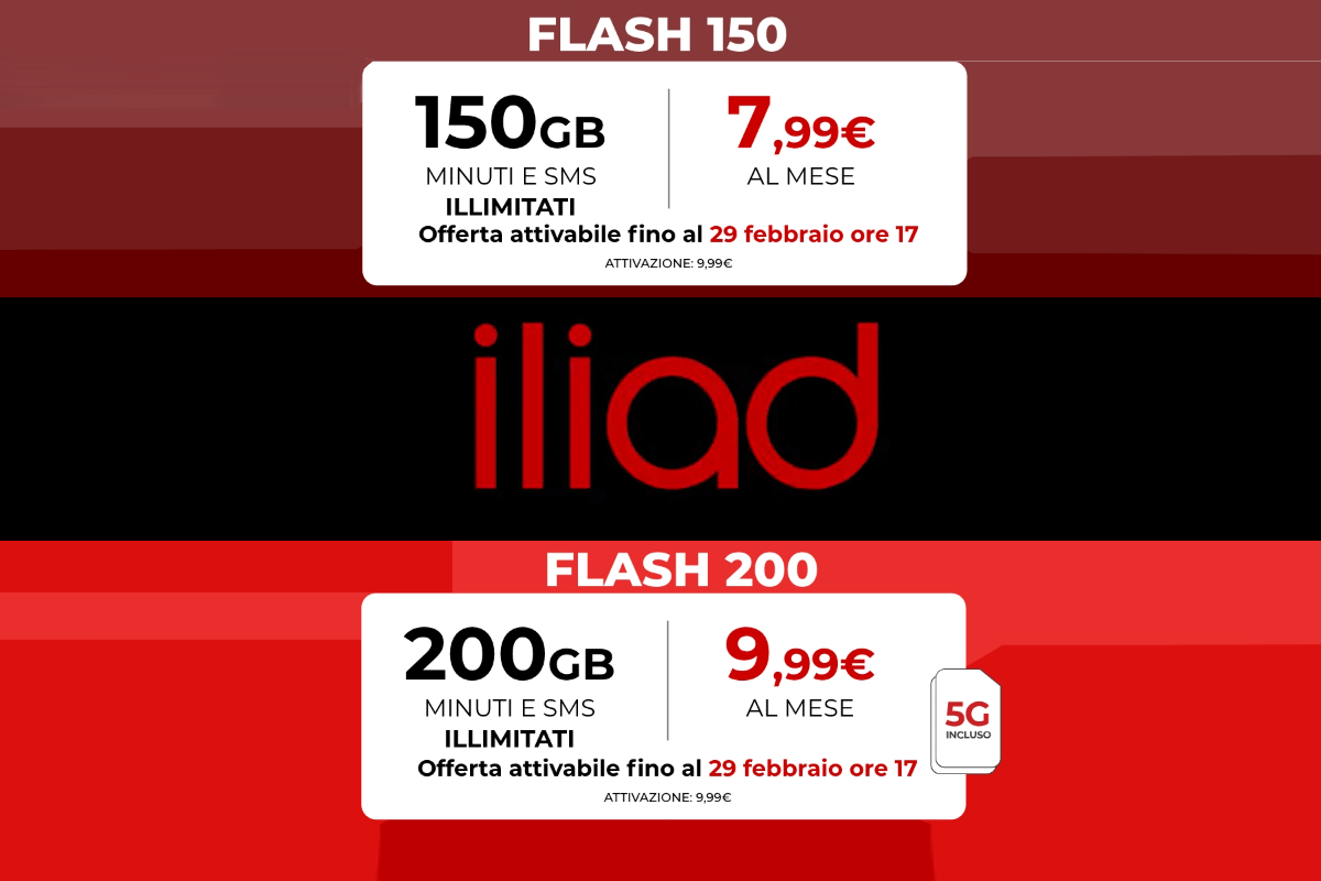 Iliad Flash 150 4G e Flash 200 5G disponibili fino a fine Febbraio 2024