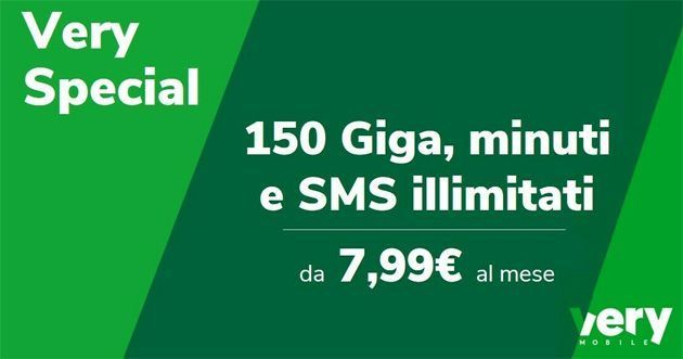 Very Mobile offre 150 Giga a 7,99 euro al mese con Buono Regalo Amazon e attivazione inclusi