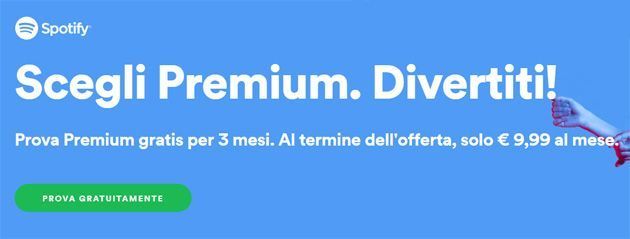 Per accedere all’offerta di prova per 3 mesi di Spotify Premium bisogna seguire le istruzioni disponibili sul sito https://www.spotify.com/it/premium/