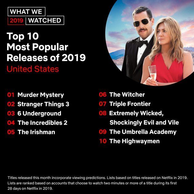 Le 10 uscite piu’ popolari del 2019 negli Stati Uniti su Netflix: