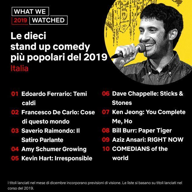 Le dieci stand-up comedy più popolari del 2019 su Netflix in Italia: