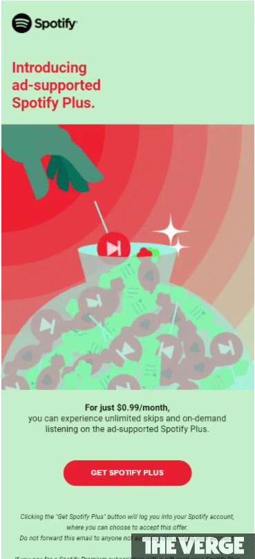 Via di mezzo tra il piano gratuito e quello Premium, Spotify Plus per meno di 1 dollaro al mese offre skip illimitati e ascolto on-demand.